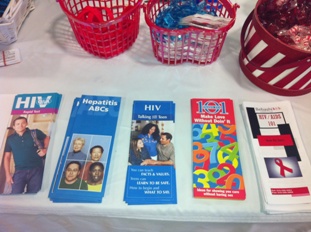 A collection of informational brochures about HIV and AIDS.